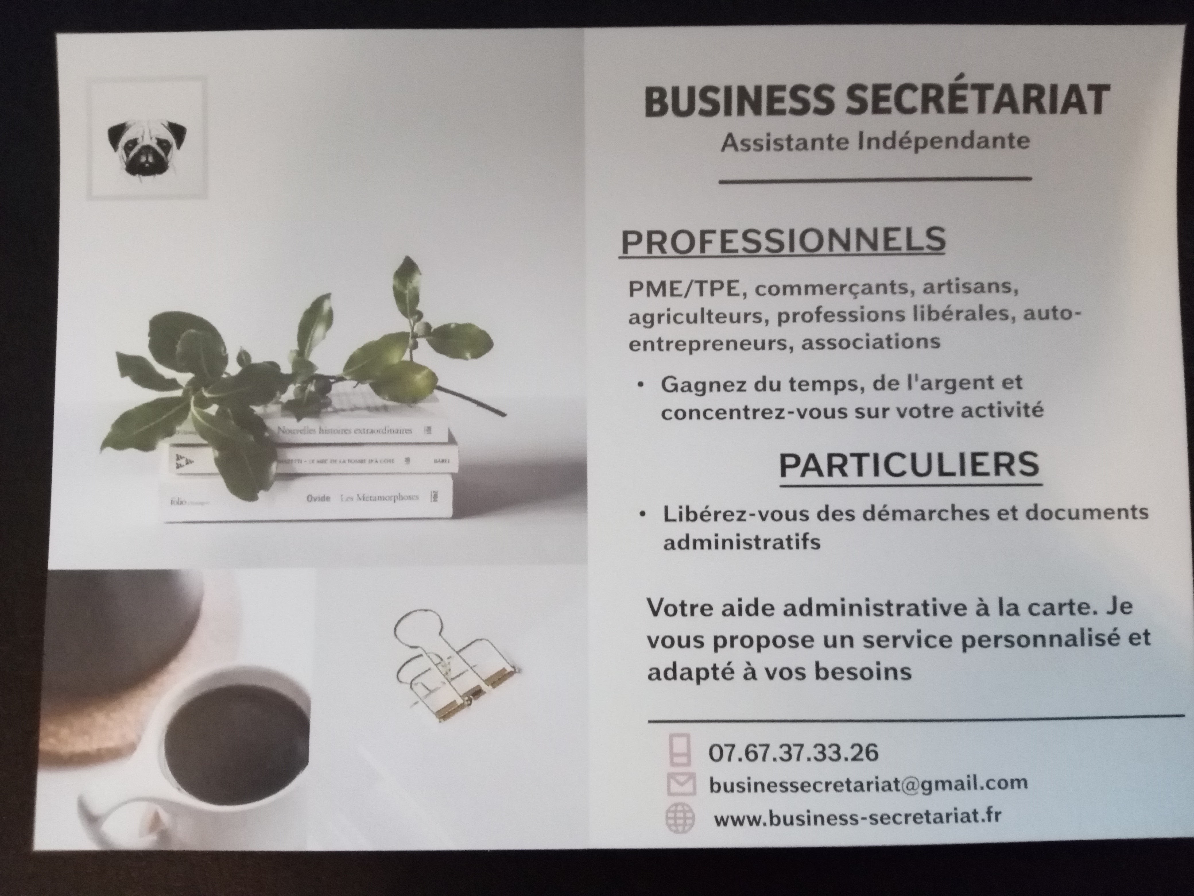 Je propose une aide administrative ponctuelle ou régulière et sans engagement, en présentiel ou en distanciel qui s'adresse aux particuliers et aux professionnels (TPE/PME, artisans, commerçants, professions libérales, agriculteurs, auto-entrepreneurs ...). N'hésitez pas à me contacter !