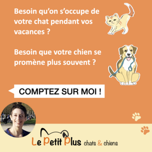 Je suis l'unique intervenante du Petit Plus : titulaire de l'Attestation de Connaissances pour les Animaux de Compagnie et les Espèces Domestiques, après formation par le CNF Pro Formations professionnelles des métiers du chien et du chat. Ma micro-entreprise est assurée (responsabilité civile professionnelle). Il est parfois compliqué de trouver une personne de confiance, de laisser son animal et son logement à quelqu'un d'extérieur... Alors j'ai prévu une pré-visite chez vous, gratuite et sans engagement : vous pourrez me poser des questions, me briefer... en toute sérénité !